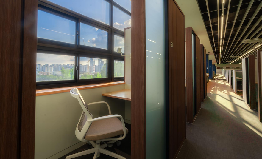 作为建校50周年纪念项目的一部分,亚洲大学中央图书馆自习室的建设顺利完工。因此,27日下午在中央图书馆三楼自习室举办了一场庆祝开业的活动。图书馆三楼原本作为阅览室的空间,在去年寒假期间进行了改造,重新设计为由密集学习空间和开放观景桌组成的学习休息室。共有241个座位,其中开放座位174个,靠窗座位27个,个人强化学习空间40个去年,为庆祝亚洲大学建校50周年,亚洲大学中央图书馆制定了分四阶段的改造计划,目标是2026年竣工。该计划是建造一个综合学习空间,总建筑成本为80亿韩元,而改造3楼自习室是第一步。第二阶段计划对四楼阅览室空间进行改造,并加装电梯和休息区;第三阶段计划对图书馆一层进行整体改造;第四阶段计划对图书馆一层进行改造。计划通过改造资料室的二至四层来创建文化空间。