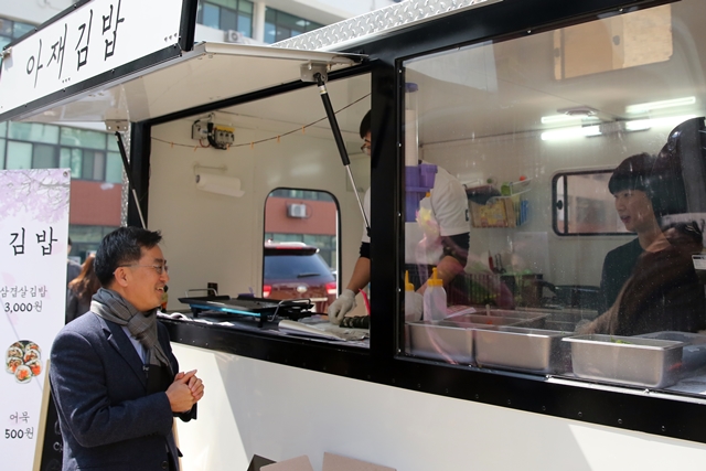 교내 푸드트레일러 오픈, 총장 운영 학생들 격려