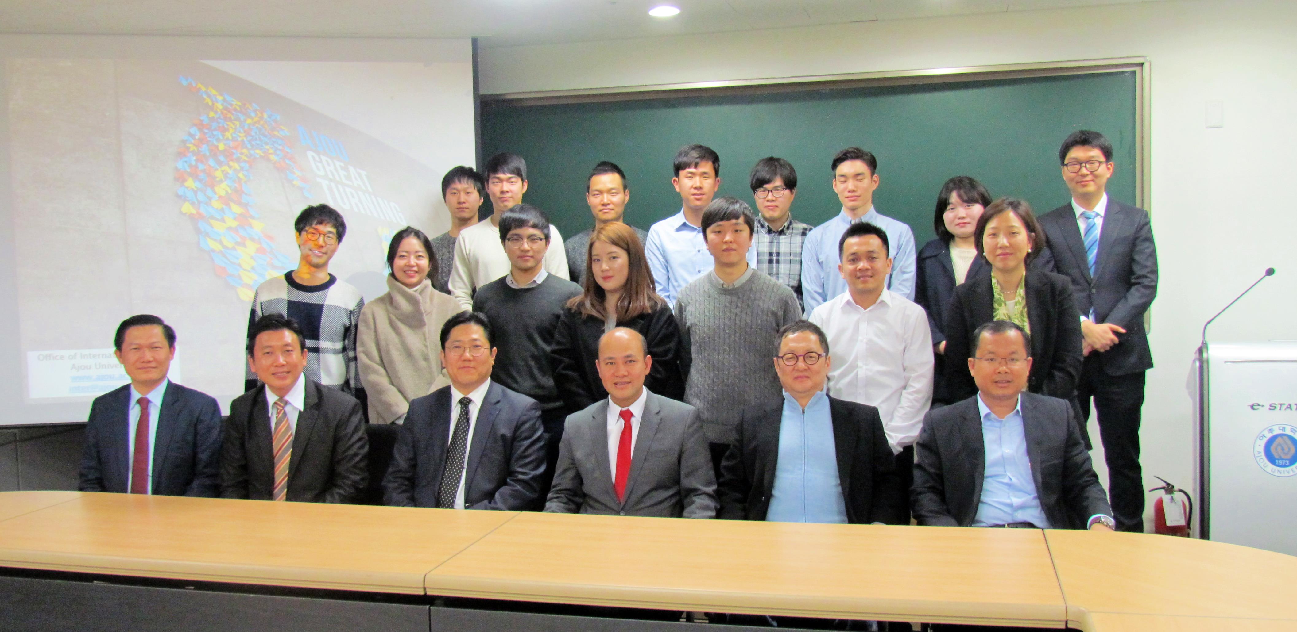 김동연 총장이 지난 20일부터 23일까지 중국을 방문해 세계한인무역협회 북경·상해 지회, 상해 주재 기업인들과의 미팅을 통해 아주대와 기업 간의 협력 방안을 논의했다. 세계한인무역협회(World-OKTA, 이하 OKTA)는 세계 각국에서 활동하는 한인 기업인들의 경제·무역 단체로 지난 1981년 설립됐으며 전 세계 70개국에 137개 지회가 있다. 우리 학교는 지난해 시작한 ‘OKTA 인턴십 프로그램’을 필두로 'AJOU-World OKTA Bridge 현장실습 연계형 기업지원사업' 등을 마련, OKTA와 지속적인 협력 관계를 이어가고 있다. 김동연 총장은 21일 OKTA 북경 지회 소속 기업인들과, 다음 날인 22일 OKTA 상해 지회 소속 기업인들과 간담회를 가졌다. 북경에서 활동 중인 한인 기업인들은 한·중 대학생 대상 창업 아이디어 콘테스트 진행 상황을 소개하고, 아주대 재학생들의 중국 취업 및 창업을 적극 지원하겠다고 밝혔다. OKTA 상해 지회에서는 김동연 총장을 6월 개최될 OKTA 차세대 회원 교육 프로그램 강연에 초청하기도 했다. 한편 이어 열린 상해 주재 기업인 간담회에는 KOTRA 이민호 관장, 수출입은행 이재홍 소장, 삼성물산 김태선 법인장, CJ 박은모 대표 등 10여명의 기업인들이 참석해 김동연 총장을 비롯한 우리 학교 관계자들과 환담했다. 이 자리에서 김 총장은 아주대가 추진하고 있는 프로그램에 대해 소개했고, KOTRA를 비롯한 주요 기관들이 아주대 주관 재학생 인턴십 프로그램에 적극 참여하는 방안을 검토하겠다고 밝혔다. 그 외에도 주 중국 김장수 한국 대사(전 안보실장) 초청 오찬, 상해 한석희 총영사 초청 오찬 등이 마련됐다. 이 자리에서는 한중 협력, 중국 경제 동향, 아주대학교와 중국 대학들과의 협력 증진 방안 등이 논의되었다. *사진 위 - 재중 기업인과의 간담회 현장