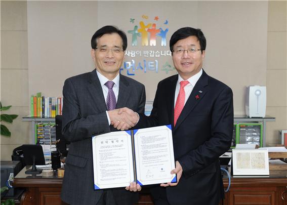 우리 학교 LINC사업단 산하의 스마트그리드 산학협력협의체가 산업통상자원부에서 주관하는 2014년 산업핵심기술개발사업 창의산업 분야 「에너지 소비 고효율화를 위한 제조 엔지니어링 서비스 개발」 과제에 선정되어 3년간 총 30억 원을 지원받게 됐다. 산업핵심기술개발사업은 산업통산자원부가 창의산업, 소재부품산업, 시스템산업 등 3개 분야에서 세부 과제를 선정해 3년부터 5년까지 과제 특성에 따라 차등 지원하는 사업이다. 이번 과제에 선정된 주체인 스마트그리드 산학협력협의체는 지난해 9월 ICT분야 전문가 30명으로 출발해 기술교류, 현장실습, 취업지원 등 왕성하게 활동하고 있다. 과제 수행은 협의체를 모체로 신설될 스마트그리드연구센터(센터장 이주연 교수)가 주관하며 회원사인 (주)우암(회장 송혜자), (주)인코어드 테크놀로지스(사장 최종웅), (주)제니스텍(사장 윤석열), (주)포스코 ICT(사장 최두환) 등이 함께 참여한다. 특히, 우리 학교 LINC사업단은 판교-광교-동탄-흥덕을 잇는 산업협력 생태계를 구축하기 위해 13개 산학협력협의체를 운영하고 있고 이중 하나인 스마트그리드 산학협력협의체가 이번 과제에 선정되는 등 산학협력의 모범사례로 떠오르고 있다. 선정된 연구과제의 핵심내용은 생산정보와 에너지정보를 실시간 연동하는 Smart FEMS(Factory Energy Management System)기술을 이용하여 시스템 차원의 에너지효율화와 공급 신뢰성 극대화하는 에너지 운영기술이다. 또 Smart FEMS에 녹색 산업현장을 구현하는 사물인터넷(IoT) 기술, CPPS(Cyber Physical Production System) 시뮬레이터와 에너지 수요관리 프로세스를 통합 관리하는 융합과제이다. 이주연 스마트그리드 연구센터장은 “판교지역의 산학협력 생태계 구축의 일환으로 추진된 이 과제는 국내 최초의 Smart Factory와 Smart Grid의 융합과제로서 에너지 다소비 업종인 철강업종에 시범적용을 하게 되고, 모든 제조업 공장에 확대 적용할 계획을 갖고 있다”고 말했다. [스마트그리드 산학협력협의체 현판수여식]