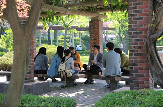 스승의 날을 맞아 ‘교수님과의 문화산책’ 행사가 열렸다. 강의실을 벗어나 학생과 교수가 편안하게 소통할 수 있는 기회를 제공하기 위해 마련된 행사다. 15일 오후 우리 학교 성호관 앞 잔디밭에서 열린 이날 행사에는 교수와 학생 400여명이 참석했다. 잔디밭 일대에 설치된 간이 텐트와 벤치 등에서 사제 간 대화가 이어졌다. 학교에서는 카네이션과 음료를 제공했다. 우리 학교는 매년 스승의 날 교수님과의 문화산책을 진행하고 있다. 학교 홈페이지 게시판을 통해 학생이나 교수가 직접 만남을 신청하고 동참을 원하는 학생 역시 게시판을 통해 합류할 수 있다. 한편 우리 학교 이홍평 총학생회장과 이수완 부총학생회장을 비롯한 학생대표들은 스승의 날에 앞서 총장실을 방문했다. 학생대표들은 안재환 총장과 처장단에 카네이션을 선물하고 감사의 뜻을 전했다.