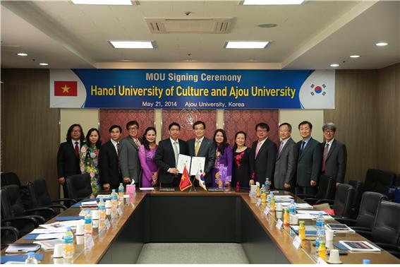베트남 하노이 문화대학(Hanoi University of Culture) 관계자들이 우리 학교를 방문했다. 양측은 MOU를 체결하고 향후 교류·협력을 확대키로 했다. 21일 오전 율곡관 제1회의실에서 열린 MOU 체결식에는 안재환 총장과 정경훈 인문대학 학장, 임재익 국제대학원장, 김민구 기획처장, 조재형 학생처장, 김병관 대외협력처장, 권혁표 국제협력팀장 등이 참석했다. 하노이 문화대학에서는 응우웬 반 그엉(Nguyen Van Cuong) 총장을 비롯한 6명의 관계자가 함께 자리했다. 안재환 총장과 응우웬 반 그엉 총장은 상호 협력 확대를 위한 MOU에 서명하고 이를 교환했다. 안 총장은 “오늘 체결하는 MOU를 통해 앞으로 한국과 베트남 간의 교육 협력에 보다 큰 기여를 할 수 있기를 기대한다”고 전했다. 한국과 베트남은 1992년 수교 이후 정치, 경제, 문화 전 분야에서 활발한 협력관계를 이어왔다. 우리 학교에는 총 28명(학부 4명, 대학원 24명)의 베트남 유학생들이 재학 중이다.