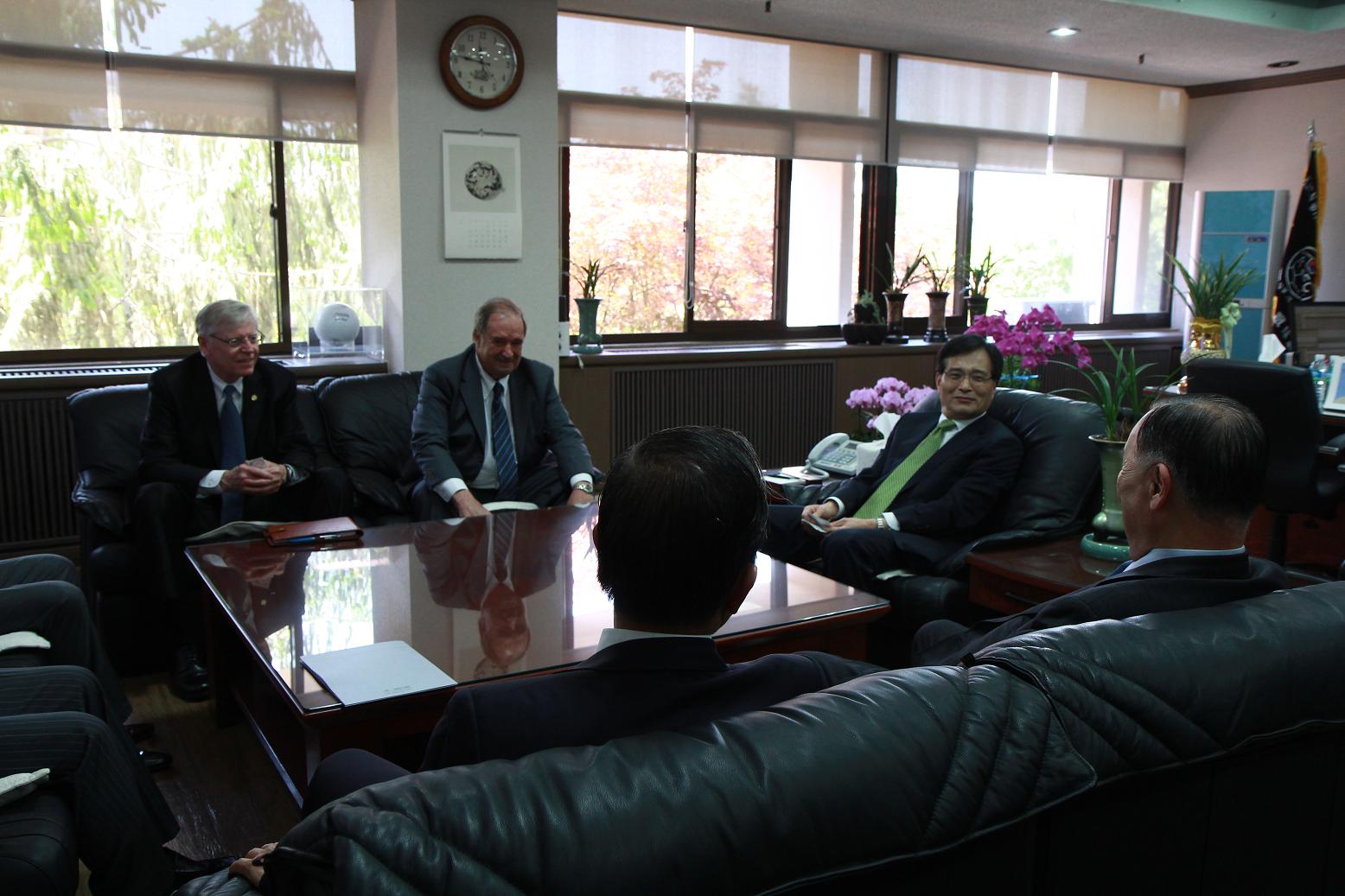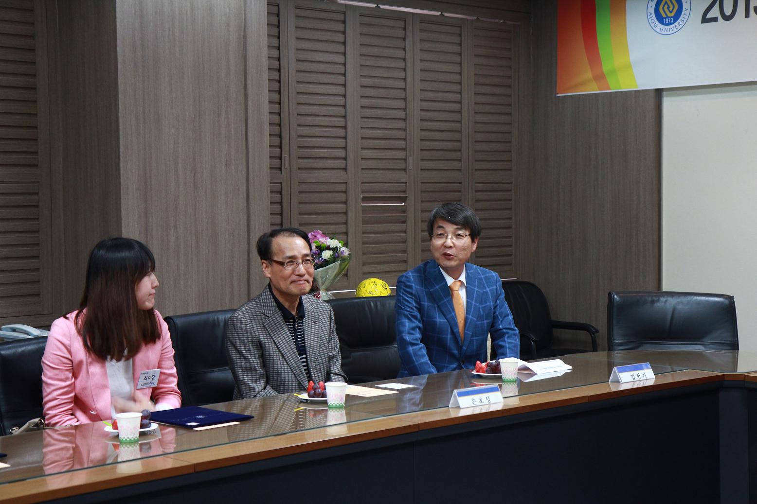 24일 우리 학교에서 ‘2013 고교-대학 연계간담회’가 열렸다. 이날 행사에는 우리 학교 각 대학 학장 및 학과장, 교직원이 참석해 경기 지역 고등학교 교사들과 소통의 시간을 가졌다. 저녁 6시부터 체육관에서 진행된 간담회에는 310여명의 경기 지역 고등학교 진학담당 교사들이 참석했다. 우리 학교에서는 안재환 총장을 비롯해 소의영 의무부총장, 유재석 대학원장, 김민구 기획처장, 송현호 학생처장, 김영길 정통대학장, 임기영 의과대학장, 유문숙 간호대학장, 조재형 인문대학장, 노병희 소프트웨어융합학과장, 김현옥 영어영문학과장, 전윤수 문화콘텐츠학과장 등이 자리했다. 간담회는 안재환 총장의 인사말을 시작으로 한호 입학처장의 아주대 소개, 김동석 입학팀장의 입학안내 순으로 진행됐다. 안 총장은 인사말을 통해 “신입생의 50% 이상이 경기도 지역 학생인 아주대는 명실상부한 경기도의 대표 대학”이라며 “참석하신 선생님들이 지난해처럼 올해에도 훌륭한 제자를 우리 학교에 보내주신다면 훌륭한 인재로 키우도록 최선을 다하겠다”고 말했다.