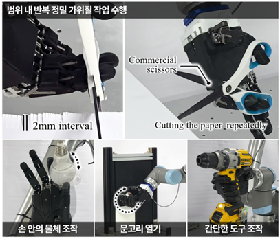 김의겸 교수팀이 개발한 인간형 로봇손(작업장면)