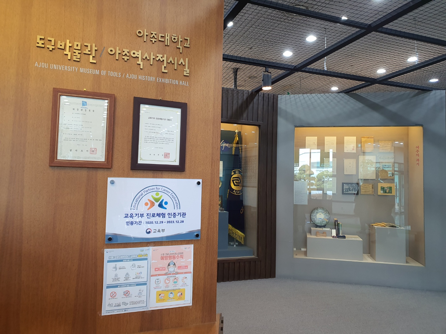 우리 박물관이 교육부가 시행하는 [교육기부 진로체험 인증기관]에 선정되었다.교육부와 대한상공회의소는 지역사회에서 양질의 진로체험 프로그램을 제공하고 있는 다양한 체험처를 발굴하고, 진로체험의 질 관리 체계 구축을 위해 2016년부터 [교육기부 진로체험 인증제]를 시행하고 있다.인증기관으로 선정되기 위해서는 연 4회 이상 무료 진로 체험을 의무적으로 운영해야 하며, 체험활동 공간·시설의 쾌적성 및 안정성을 유지해야 한다. 올해 전국 322개, 수도권에서는 74개의 기관이 인증을 받았다. 우리 학교는 관내 중학생들을 대상으로 문화해설사 직업 체험 프로그램 “나 누구와 얘기하니?”를 운영하며 진로탐색의 기회를 제공해 왔다.인증기관으로 선정되면 인증마크 사용권한을 부여받고, 우수 프로그램 홍보, 진로체험 프로그램 개발·운영 관련 컨설팅을 제공받을 수 있다.
