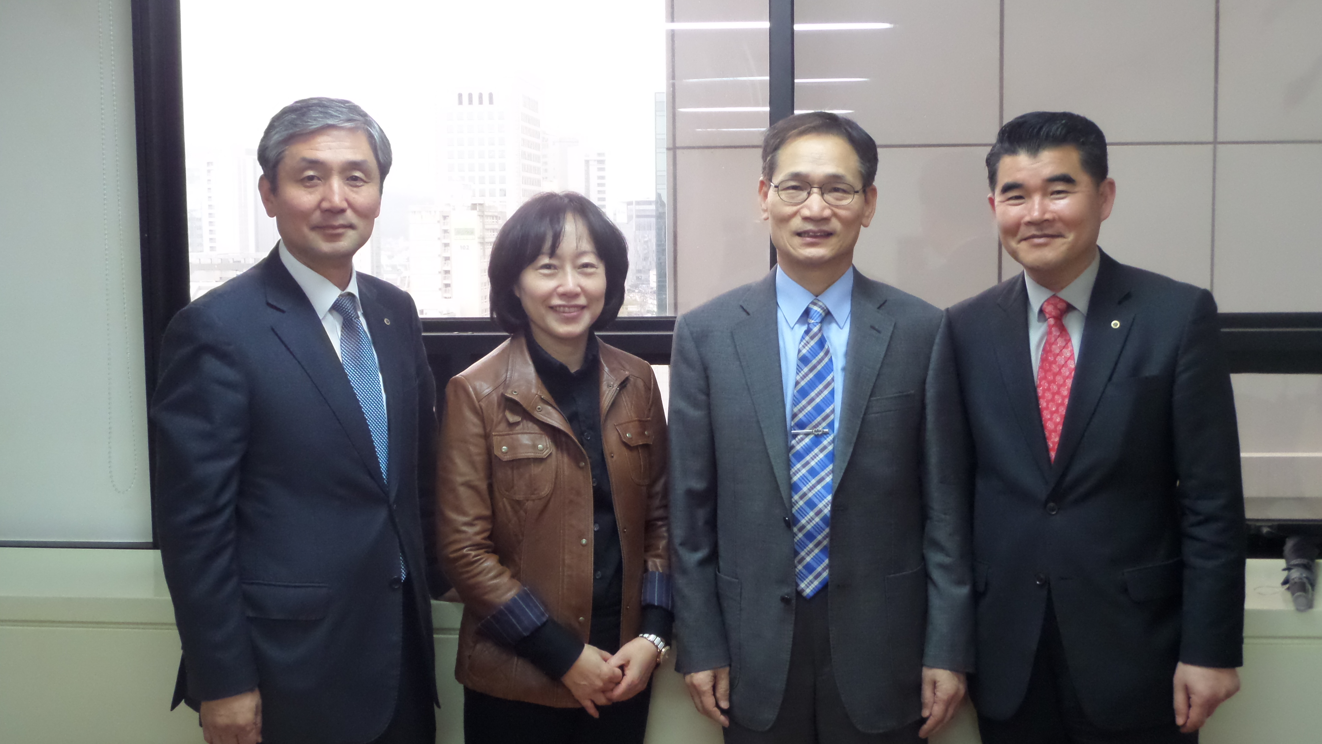 좌측에서 두번째 이찬* 상무, 세번째 김경* 동문(전자75) 방문대상자 성 함 : 김경* 대표(전자75) 소 속 : TOC VISION 방문자 : 김윤기(대학발전본부장), 이강준,황원복(대학발전본부) 방문일시 : 2015년 4월 14일 15시 00분 방문장소 : TOC VISION 사무실 ( 서울특별시 서초구 강남대로 309( 서초동, 코리아비즈니스센터 1609호 )) 김경* 동문은 LG하니웰(주)에서 기획 및 생산관리 방면의 업무를 담당하다 1999년 퇴사하여 현재까지 TOC관련 분야의 한 길을 걸어온 전문 경영컨설턴트이다. TOC( Theroy of Constraints : 제약이론) 분야는 기업경영 시스템의 전체 최적화를 통하여 목표를 달성하는 데 제약이 되는 요소를 찾아 개선하는 지속적인 경영혁신 기법이다. ‘TOC VISION’은 삼성경제연구소 TOC포럼 참여와 ㈜하이트론시스템즈 TOC컨설팅을 수행한 이후 2006년에 같은 분야의 지인들을 모아 설립한 제약경영과 생산경영(DBR), 프로젝트 경영(CCPM), 성과평가, 재고관리 및 PI, ERP, SCM, ISP, 경영전략 수립 등 전문 컨설턴트 그룹 회사이다. 동화마루, ㈜오성전자, 삼화기전(주), 한솔제지, 한국전자통신연구원, 효성기술원, 이랜드, 한국전력, ACE테크, 아모레퍼시픽 등 다수의 다양한 기업과 컨설팅을 진행하였고 서울산업대, 한양대, 아주대 등 강단을 통해 후진 양성에 힘쓰고 있다. 경영혁신공정표와 린 프로젝트 리더쉽이라는 저서가 있다. 사무실에는 신호* 동문(상무, 전자80), 이찬* 상무( 아주대 대학원 재학 중 ) 등 총 6명이 컨설턴트로 함께 근무하고 있다.