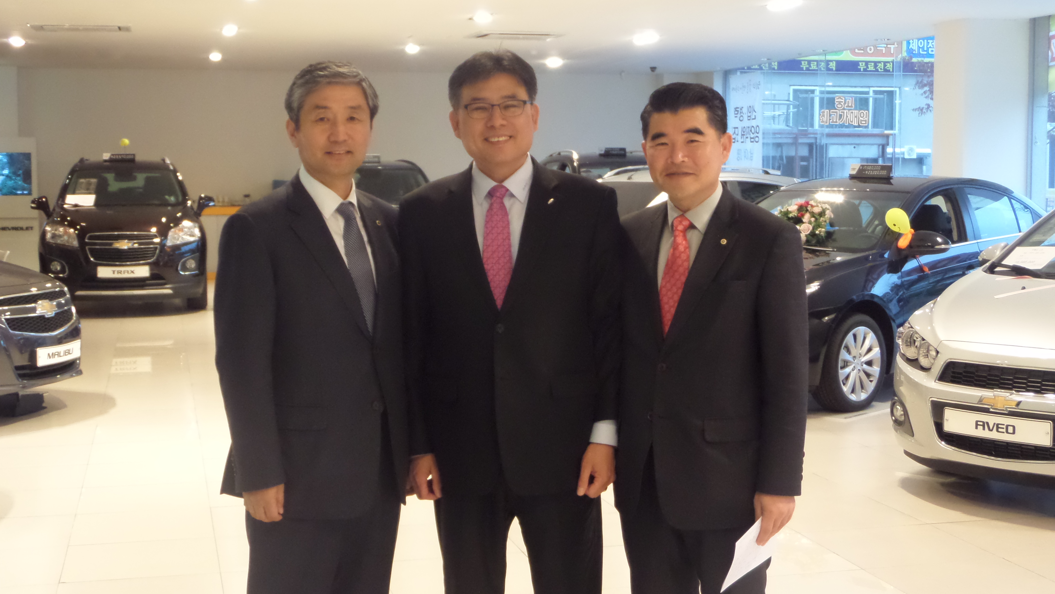 방문대상자 성 함 : 이현* 대표(공업화학75) 소 속 : 쉐보레자동차 수원중앙점 방문자 성명 : 김윤기(대학발전본부장), 이강준, 황원복(대학발전본부) 방문일시 : 2015년 4월 14일 17시 00분 방문장소 : 쉐보레자동차 수원중앙점( 경기 수원시 팔달구 경수대로 649 (지동) ) 이현* 동문은 대학졸업 후 ROTC 18기로 복무하였고, 대우조선에 입사하여 93년까지 11년을 근무하였다. 이후 대우자동차 수원 지점장과 현재의 대리점 대표까지 22년째 대우 자동차와의 인연을 이어오고 있다. 한국GM의 경우에는 직영점 없이 전체가 대리 판매점 형태로 운영되고 있으며, 수원중앙점은 쉐보레의 전국 판매거점 중 1호로 개설하였고 전국 8개 중요 허브 중 하나이며, 수차례 우수 판매점으로 선정되는 등 꾸준한 실적을 보이고 있다고 한다. 현재 쉐보레는 케딜락, 폰티악, 뷰익, GMC, HUMMER, SATURN 등 미국 GM의 생산차종 중 한 종류로서 한국에서 80만대의 완성차와 100만대의 미완성 자동차를 생산하고 있으며, 완성차 중 10% 만을 국내 판매하고 나머지는 전량 수출한다고 한다. 90년대 초부터 본교 및 지역 동문회 임원으로 꾸준하게 봉사하였고, 아주대학교총동문회의 16대 회장으로 활동하면서 모교와 총동문회 발전에 크게 기여하였다. 현재에도 총동문회 고문과 모교 ROTC동문회 감사로 활동하면서 대표적인 영원한 아주인으로서 역할을 다하고 있다. 특히, 로타리 클럽 봉사활동에 열성적일 뿐 아니라, 독실한 불교 신자로 지역 군부대를 방문하여 군 장병들에게 법회를 주관하는 법사로 활동하는 등 병영문화 발전에도 노력하고 있고, 종교관련 기관의 장학사업도 열심히 하여 지역사회 발전에도 크게 기여하고 있다.