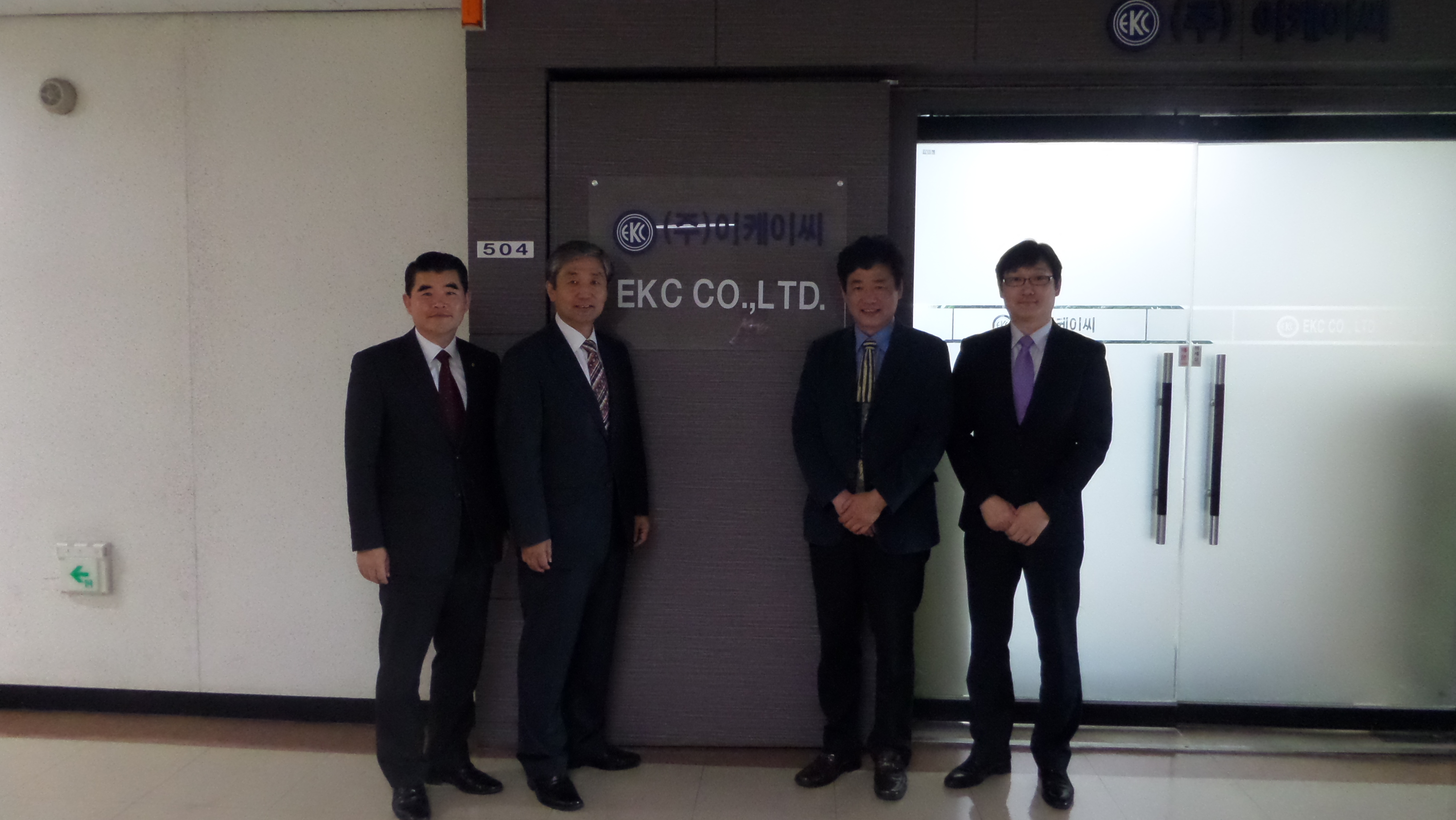 오른쪽에서 두번째 강민* 동문 방문대상자 성 함 : 강민* 대표이사(화공85) 소 속 : ㈜이케이씨 방문자 성명 : 김윤기(대학발전본부장), 이강준, 황원복(대학발전본부) 방문일시 : 2015년 4월 23일 11시 00분 방문장소 : ㈜이케이씨 본사( 경기도 군포시 엘에스로 172, 한림휴먼타워 504호 ) 강민* 동문은 대학졸업 후 충북 단양의 한일시멘트에 입사하여 플랜트건설 관련 업무에 3년 동안 근무하였다. 이후 대우건설에 경력사원으로 입사하여 김석*(기계74‘) 동문과 인연이 되었고 국, 내외 다양한 플랜트 설계, 시공분야의 경험을 쌓을 수 있었다. 현장에서의 경험을 바탕으로 2002년 8월 산업플랜트 서비스 회사를 설립하였고 터치스크린 공급사인 엠투아이코퍼레이션의 대리점권 획득에 따른 산업용 PC 및 터치스크린 판매를 시작하였다. 이어, 동년 12월에 세계적인 산업플랜트 서비스분야의 독일계 EKC Machinery & Plants GmbH와 EKC CO. LTD의 한국 Agent권을 획득하여 현재까지 주력분야로 삼고 있다. EKC CO. LTD는 각종 플랜트의 유지보수를 위해 필요한 각종 장비(Lathe, Milling, Drilling, Cutting, Press, 등)를 구매하여 납품하고, 이와 관련된 설계 및 시운전을 수행하는 회사이다. 2009년에는 Puffing Machine 제작에 필요한 특허를 보유 회사와 협력하여 장비를 수출하도록 사업영역을 확장하였고, 2011년 10월에는 국내 건설사와 플랜트 프로젝트 직접계약 업무를 시작하였다. 2011년 12월에 현재 안양 소재의 한림휴먼타워로 본사를 이전하였고, 벤처기업 인증과 기업부설연구소를 설립하는 한편, 2015년 1월에는 경영혁신형 중소기업(MAIN-BIZ) 인증을 획득하였다. 현재 사무실에는 10명의 사원이 함께 일하고 있으며, 해외 기업관련 업무가 대부분이여서 영어 등 외국어에 능통한 인력이 절대적으로 필요하다고 한다. 국내 동종기업이 적어 비교적 전문분야에 속하며, 2014년에는 50억이 상회하는 매출실적을 보였고, 2015년에는 100억을 목표로 급성장하는 기업으로서 무난한 달성을 예측하고 있다. 장남인 강현* 군이 아주대 경영학과에 재학 중이여서 부자 동문의 탄생을 예고하고 있다. 영어를 잘하는 이공계 출신 후배 신입사원 채용를 원하고 있어 학교와 협력 방안을 모색하기로 하는 한편, 2015년도가 85학번 입학 30주년 기념 모교방문의 해여서 화공과 동문 네트웍의 강화를 위해 힘써 줄 것을 부탁하였다.