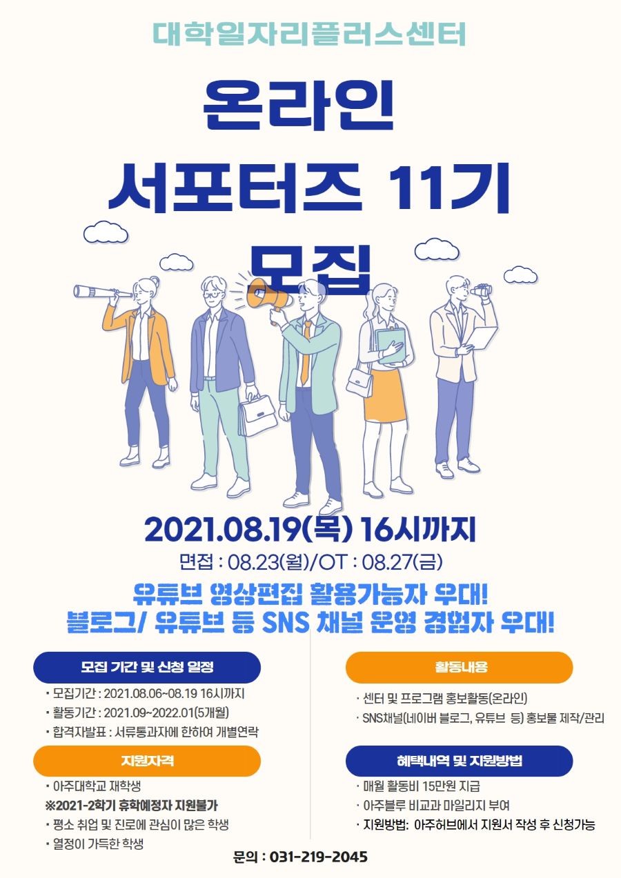 | 13527 | 취업 | 대학일자리플러스센터 | 2021-08-11 |