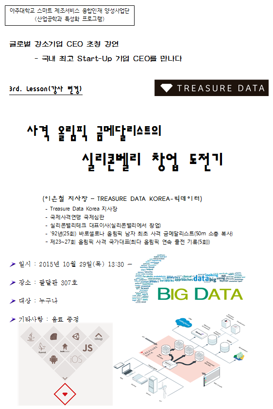 국내 최고 강소기업 CEO 초청 강연회(강사변경: 올림픽 금메달리스트의 실리콘벨리 창업 도전기: 이은철)-산업공학과 특성화사업단