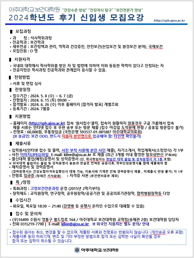 | 21281 | 입학 | 보건대학원교학팀 | 2024-05-14 | ||