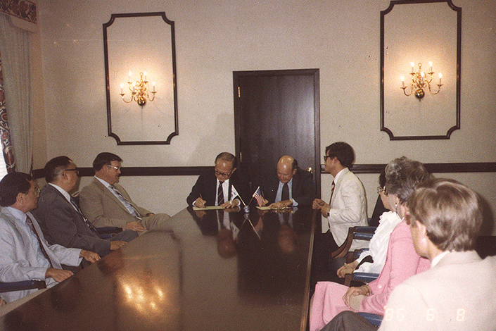 개교10주년이 되던 1983년, 아주대학교는 명실상부한 종합 대학 으로서의 발전을 위해 ‘종합발전 10개년 계획’을 수립했습니다. 이 발전계획은 아주대학교의 미래상을 제시하는 최초의 종합 발전 계획안이었습니다. 이 계획안에 따라 1985년에 사회과학 대학이 설립되고 1987년에는 인문대학과 자연과학대학이 분리, 독립되었습니다.