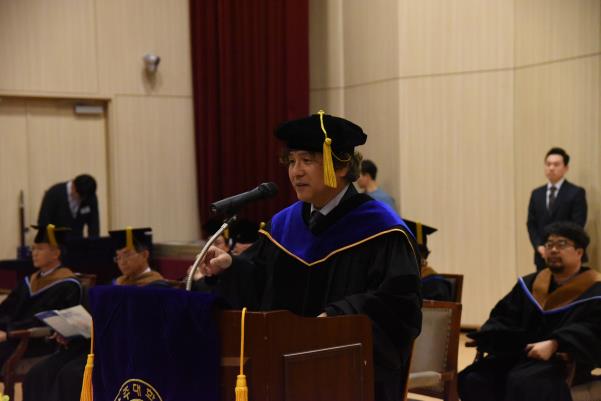 박형주 총장은 지난 2월 16일 종합관 대강당에서 열린 경영대학원 2018 학위수여식에 참석하였다