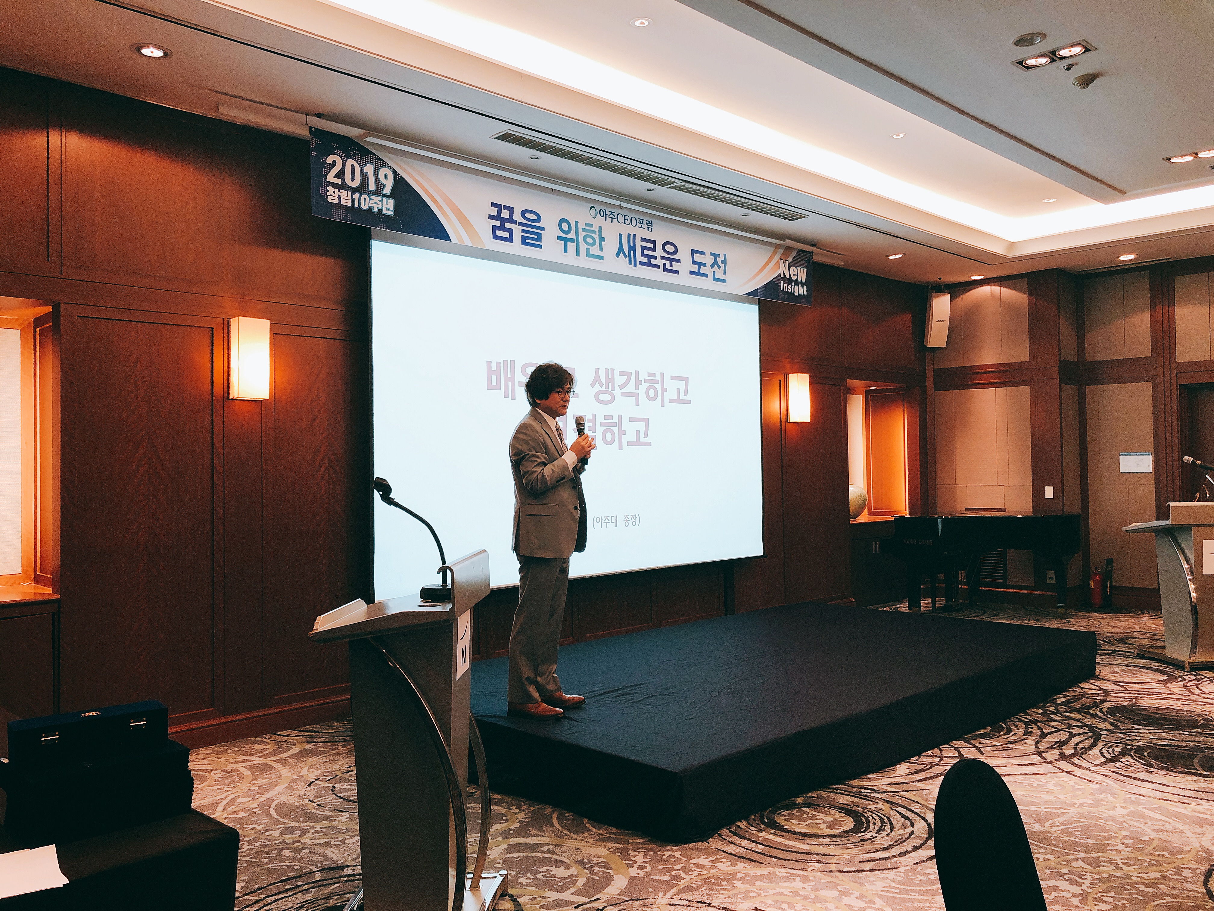 아주CEO포럼이 지난 1월 2일 아침 강남 노보텔 앰베서더 호텔에서 개최되었다. 아주CEO포럼은 본교 졸업동문 중 CEO, 대기업 임원, 전문가 등 오피니언리더(Opinion Leader)들로 구성되어 있는 모임이다. 동문 선후배 CEO들간의 열정, 가치, 그리고 지혜와 경험을 공유해 모교 및 사회 발전에 기여하고자 하는 목적으로 2009년 4월 창립되었으며, 이날 박형주 총장은 모교 출신 오피니언 리더들을 대상으로 '배우고 생각하고 연결하고'의 주제로 강연하였다.
