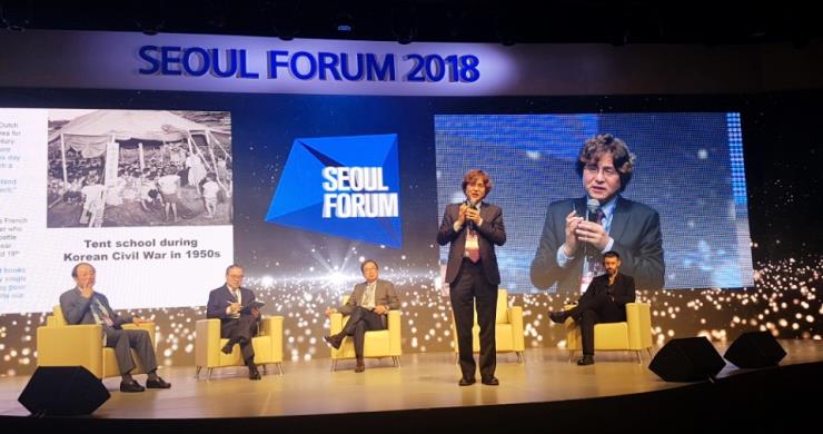 박형주 총장과 우리 학교 학생들이 지난 5월 10일, ‘Eduvolution for Next Generation(미래 한국 : 교육에서 길을 찾다)’이라는 주제로 개최된 에 참여했다. 서울포럼은 서울경제신문이 주최한 글로벌 비즈니스 포럼이다. 10일 서울 장충동 신라호텔에서 열린 포럼에서 박형주 총장은 세 번째 세션의 패널로 나섰다. ‘새로운 인재 공급 체인 구축을 위한 대학 혁신’이라는 주제로 발표와 토론이 진행됐다. 이 세션에는 ▲켄 로스 미네르바 프로젝트 아시아 총괄 디렉터와 ▲이현청 한양대 석좌교수 겸 고등교육연구소장이 발표자로 참여했고 우리 학교 박형주 총장은 유지수 국민대 총장, 김정호 카이스트 ICT 석좌교수와 함께 토론에 참여했다. 박형주 총장은 “지금의 대학은 사회 문제를 해결하고 산업에 기여하는 사람 보다, 이론을 만들고 학문에 기여하는 사람들에게 가치를 부여하고 있다”며 “앞으로는 문제를 해결할 줄 아는 인재를 키우는 데에 주력해야 한다”고 말했다.이어 “대학이 가치 체계를 바꾸고 이를 학사 제도와 교수 평가 제도 속에 녹여 내야 한다”고 덧붙였다.이번 서울포럼에서는 ▲세션1 - 4차 산업혁명 시대 창의·융합형 新인재 ▲세션2 - 소통·협동능력을 키우는 학습혁명 ▲세션3 - 새로운 인재공급 체인 구축을 위한 대학혁신 ▲세션4 - AI 시대 일자리의 변화와 평생학습시스템 구축 등의 주제가 논의 됐다. 한편 우리 학교 학생 100여명도 사전 신청을 통해 서울포럼에 참여, 여러 전문가들의 강연과 토론을 통해 미래 한국과 교육의 방향에 대해 생각하고 이야기하는 시간을 가졌다.