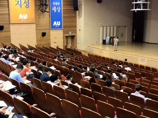 우리 학교 융합시스템공학과·글로벌경영학과 재학생들을 위한 멘토링 행사가 지난 5월 19일 열렸다. 김동연 경제부총리를 비롯한 청야 회원들이 멘토로 참여해 학생들과 대화를 나눴다.지난 19일 오후 다산관 강당에서 열린 이날 행사에는 융합시스템공학과·글로벌경영학과 재학생들과 교수진이 참석했다. 두 학과는 재직자 전형으로 운영되고 있는 학과로, 특성화고를 졸업한 뒤 3년 이상 직장생활을 한 학생들이 재학하고 있다.이날 멘토로는 어려운 환경 속에서 야간 고등학교·야간 대학을 마치고 자신의 길을 만들어간 사람들의 모임인 청야 회원들이 자리했다. 김동연 경제부총리(전 아주대학교 총장)와 강동헌 코메론 대표, 김홍국 하림그룹 회장, 권점주 득심경영연구원 원장, 박계신 다이아텍코리아 회장, 박시형 쌤앤파커스 고문, 송기진 법무법인 대륙아주 고문, 조성일 한국NSK 대표가 참석했다. 우리 학교 박형주 총장도 함께 했다.청야 모임의 회원들은 김동연 전 총장 재임 시에도 “AFTER YOU 프로그램 – 아주 글로벌 캠퍼스” 멘토링 프로그램에 꾸준히 함께 하는 등 우리 학교 학생들과 소통을 이어왔다.멘토들과 학생들은 간담회를 통해 묻고 답하는 시간을 가졌다. 간담회에 이어 피자파티도 마련됐다. 우리 학교의 재직자 학과인 공과대학 융합시스템공학과·경영대학 글로벌경영학과는 각각 2017년, 2018년부터 운영을 시작했다. 현재 융합시스템공학과에 90명의 학생이, 글로벌경영학과에는 51명의 학생이 재학 중이다.