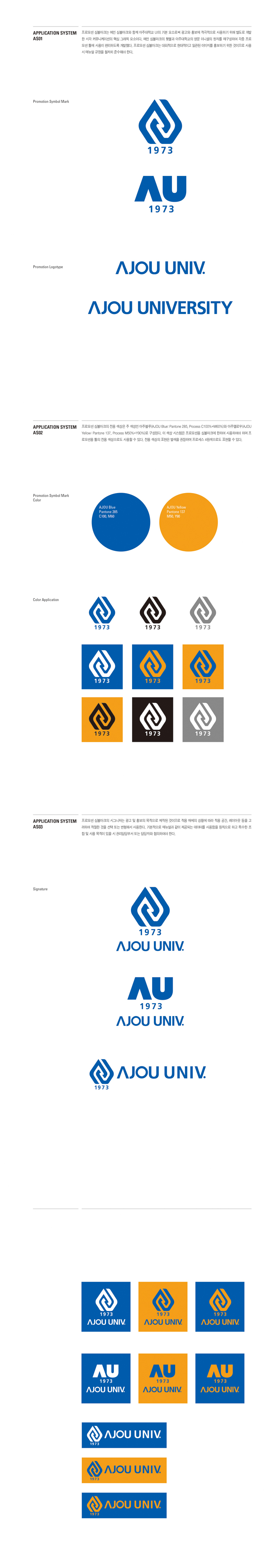 메인 심볼마크의 횃불과 아주대학교의 영문 이니셜의 첫자를 재구성하여 각종 프로모션 툴에 사용이 편리하도록 개발했다.