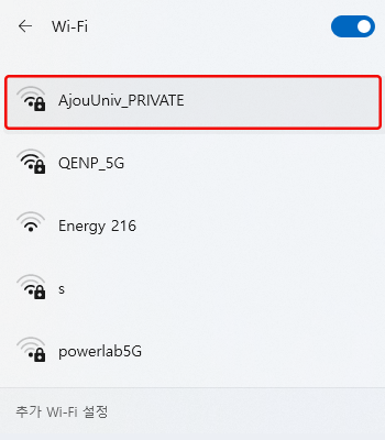 2. Wi-Fi SSID 목록 중 “AjouUniv_PRIVATE” 클릭