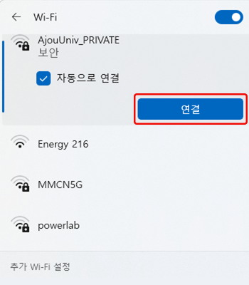 4. Wi-Fi SSID 목록 중 “AjouUniv_PRIVATE” 클릭