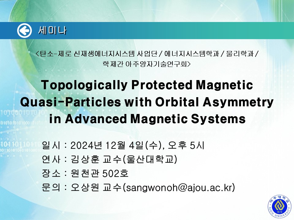 [2024.11.27.수] <탄소-제로 신재생에너지시스템 사업단/G-램프(LAMP) 사업단/에너지시스템학과/화학과/기초과학연구소/LINC 사업단> 세미나 안내