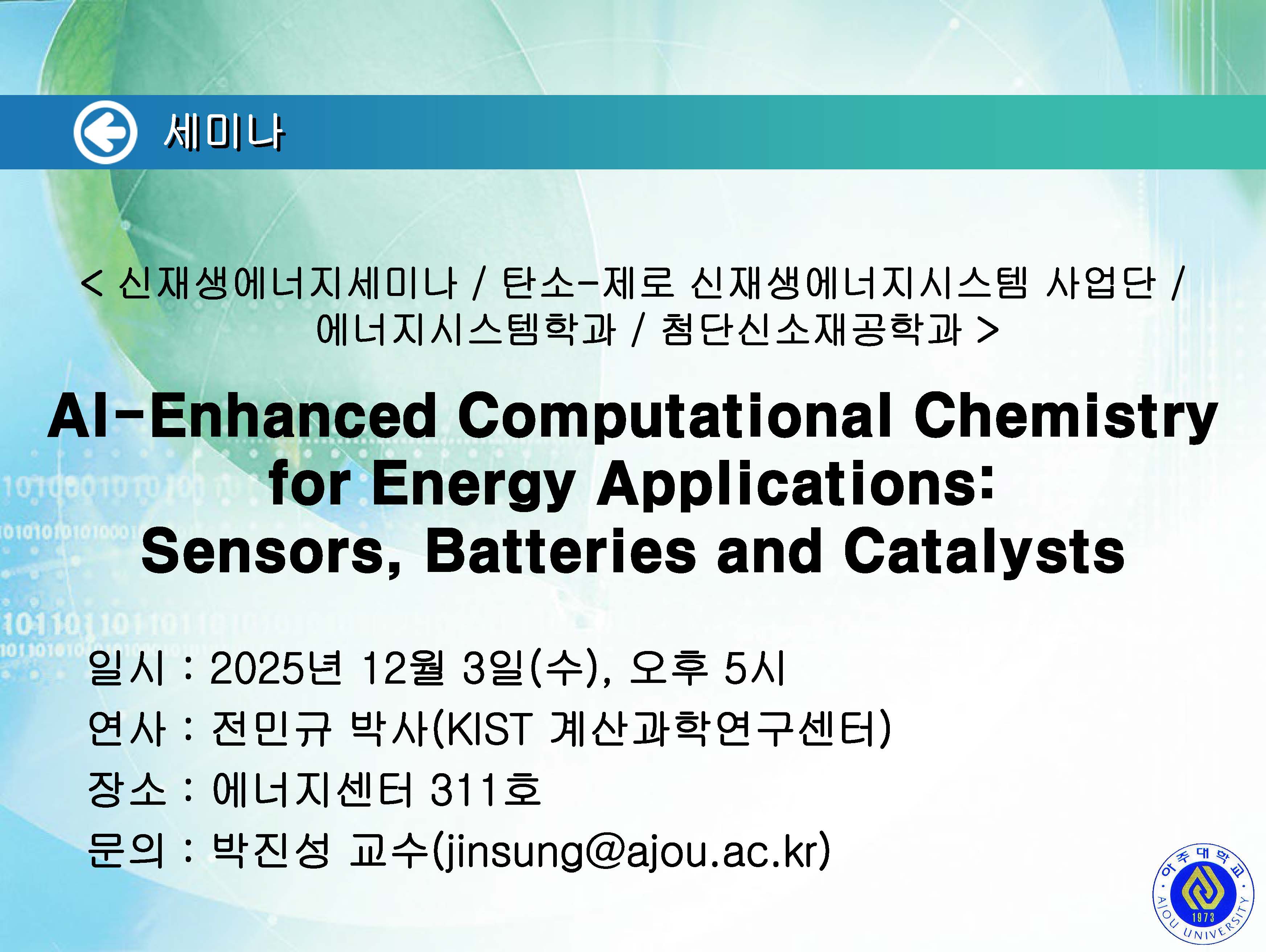 [2025.12.03.수] <신재생에너지세미나 / 탄소-제로 신재생에너지시스템 사업단 / 에너지시스템학과 / 첨단신소재공학과> 세미나 안내