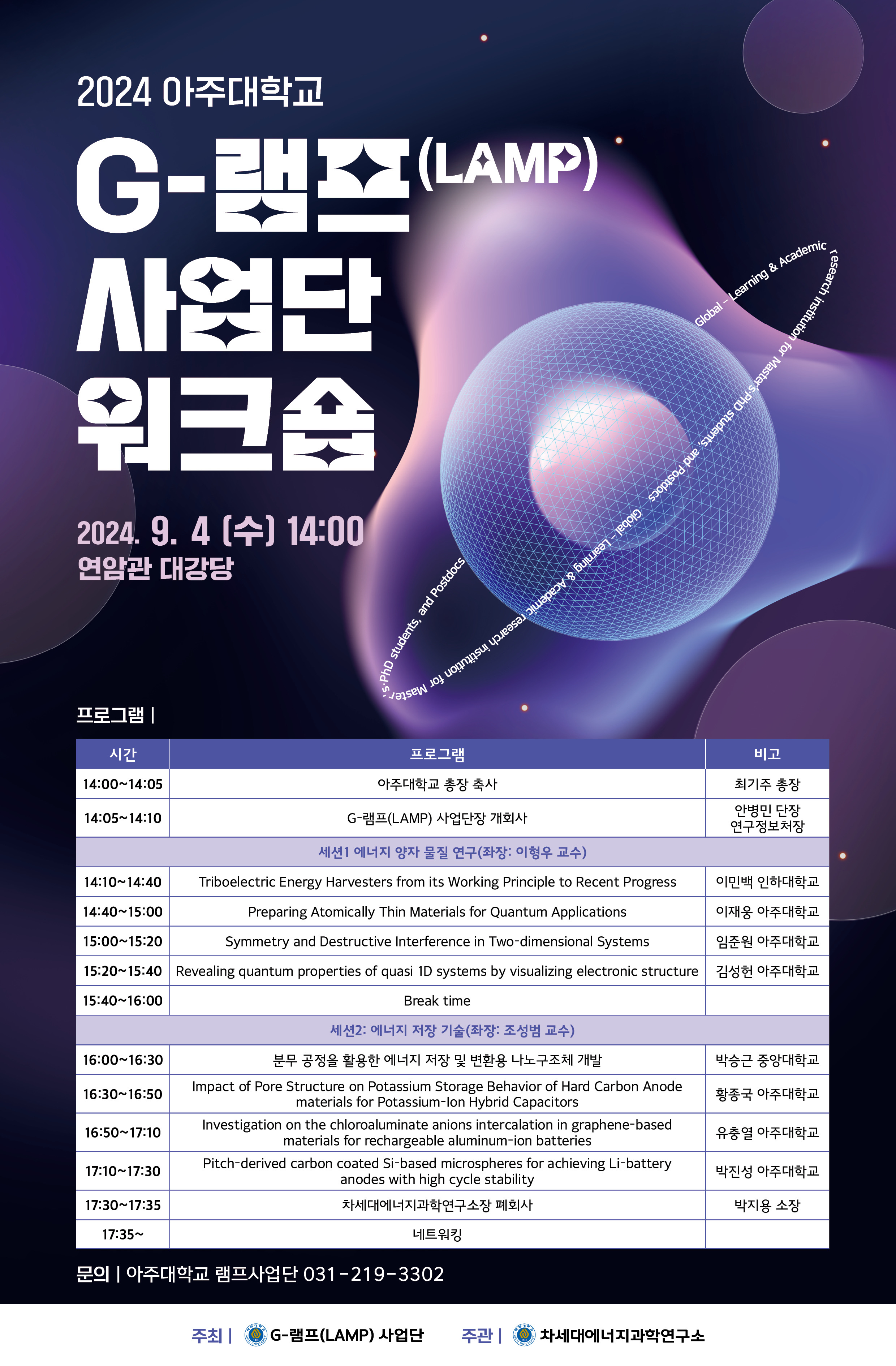 [2024.09.25(수)] < 화학과 / G-램프(LAMP)사업단 / 탄소-제로 신재생에너지시스템사업단 / 기초과학연구소 / LINC 사업단 > 세미나 안내
