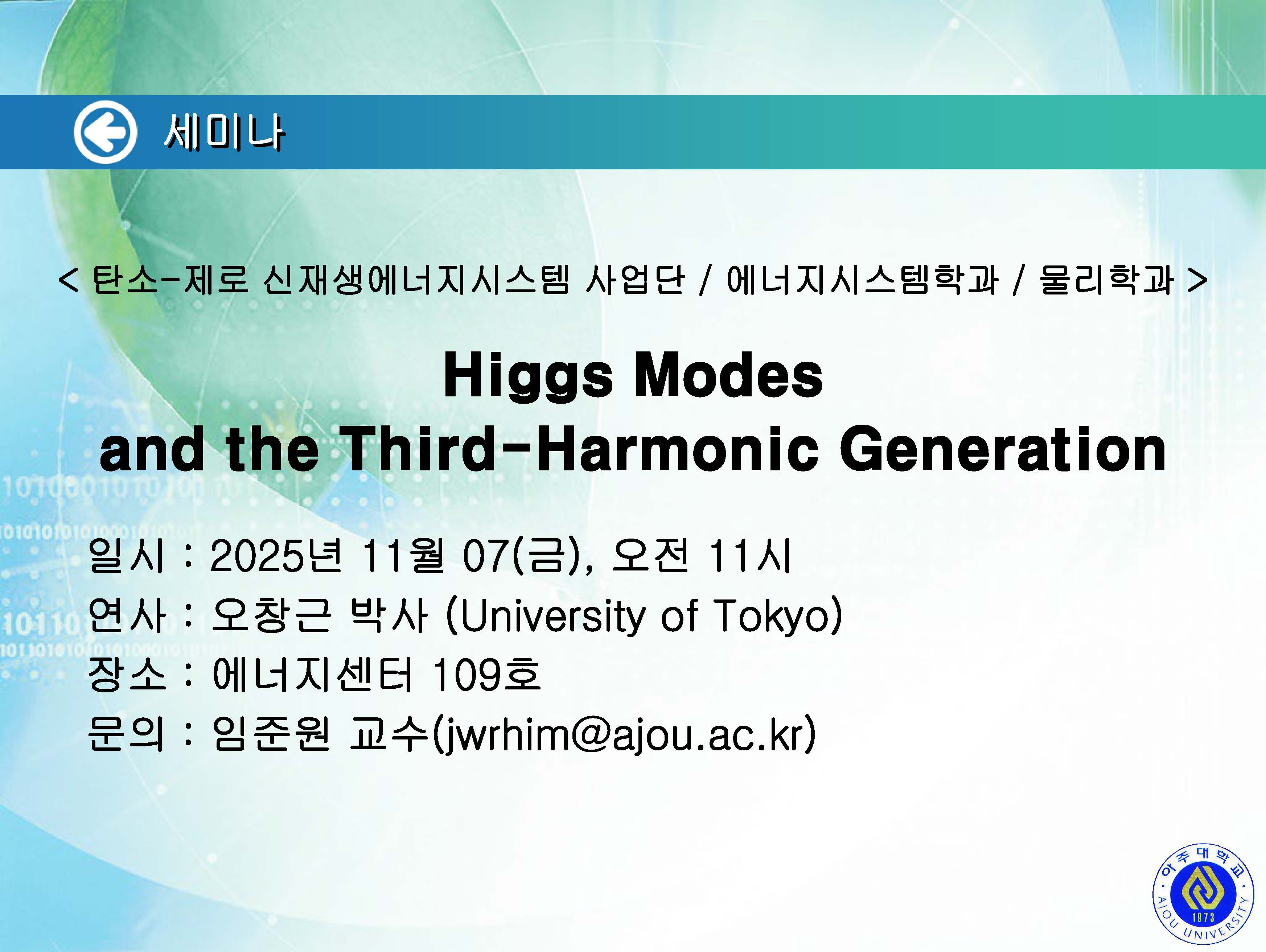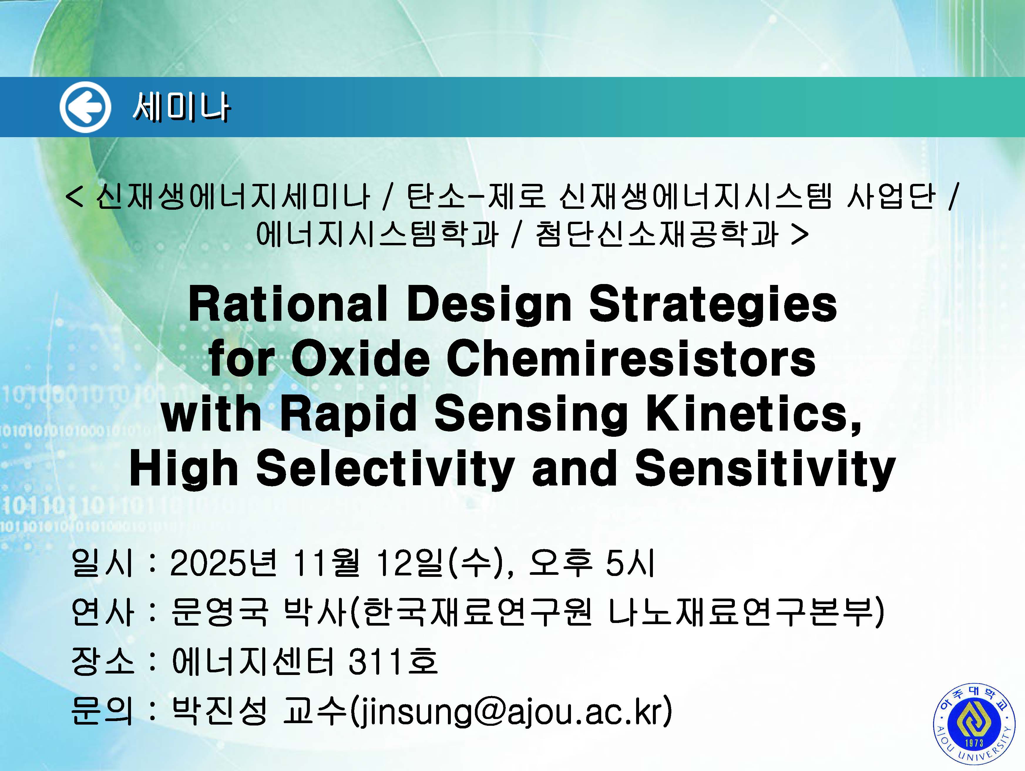 [2025.11.12.수] <신재생에너지세미나 / 탄소-제로 신재생에너지시스템 사업단 / 에너지시스템학과 / 첨단신소재공학과> 세미나 안내
