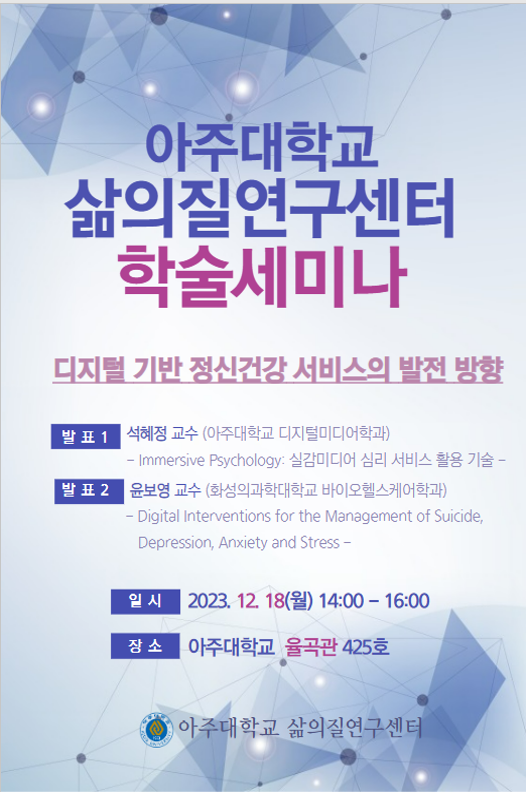 | 1537 | 세미나/포럼 | 교내 | 김지영 | 2023-12-07 | ||